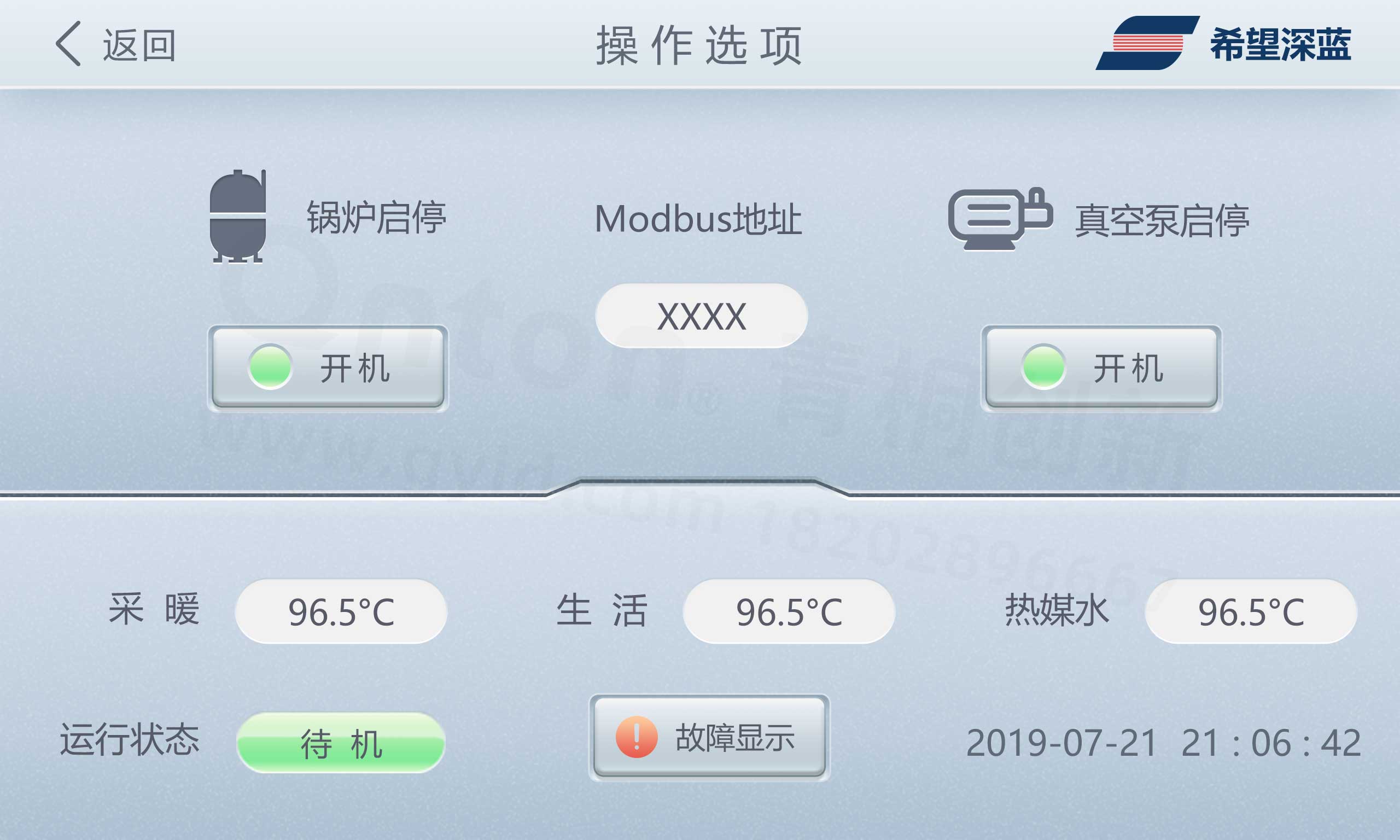 希望深蓝 - 中央空调(真空锅炉)控制系统人机交互界面设计