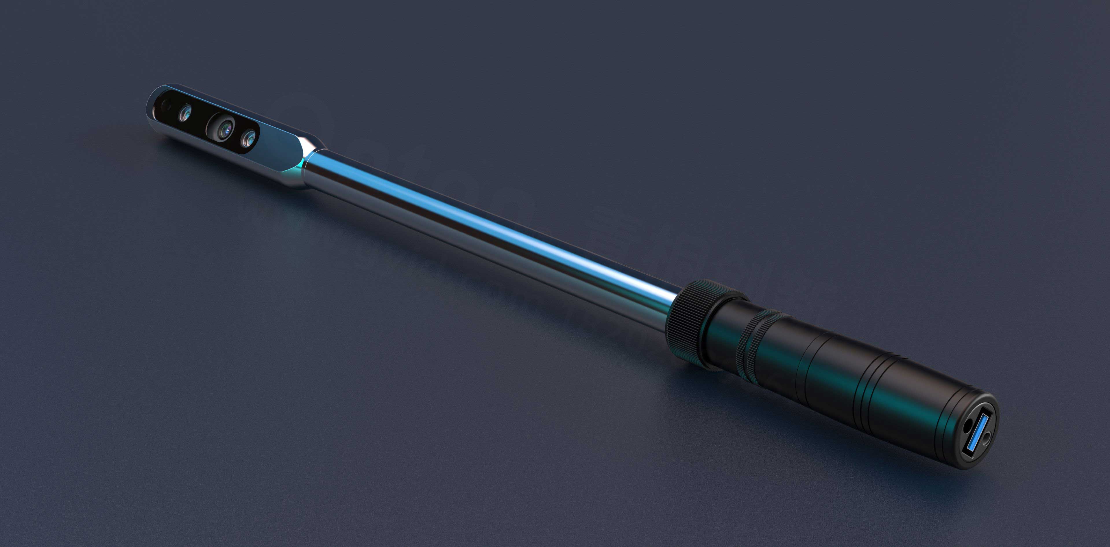 内窥镜由三个摄像头、红外线、芯片等部分组成,它可实时获取各器官组织的深度数据,并通过高级算法处理这些原始图像流,最终以呈现高分辨率的 3D 深度图。 医生通过这些分析后的合成影像,可以更加直观的获取肿瘤的前后位置和大小,以此为后续手术增加操作精准度。