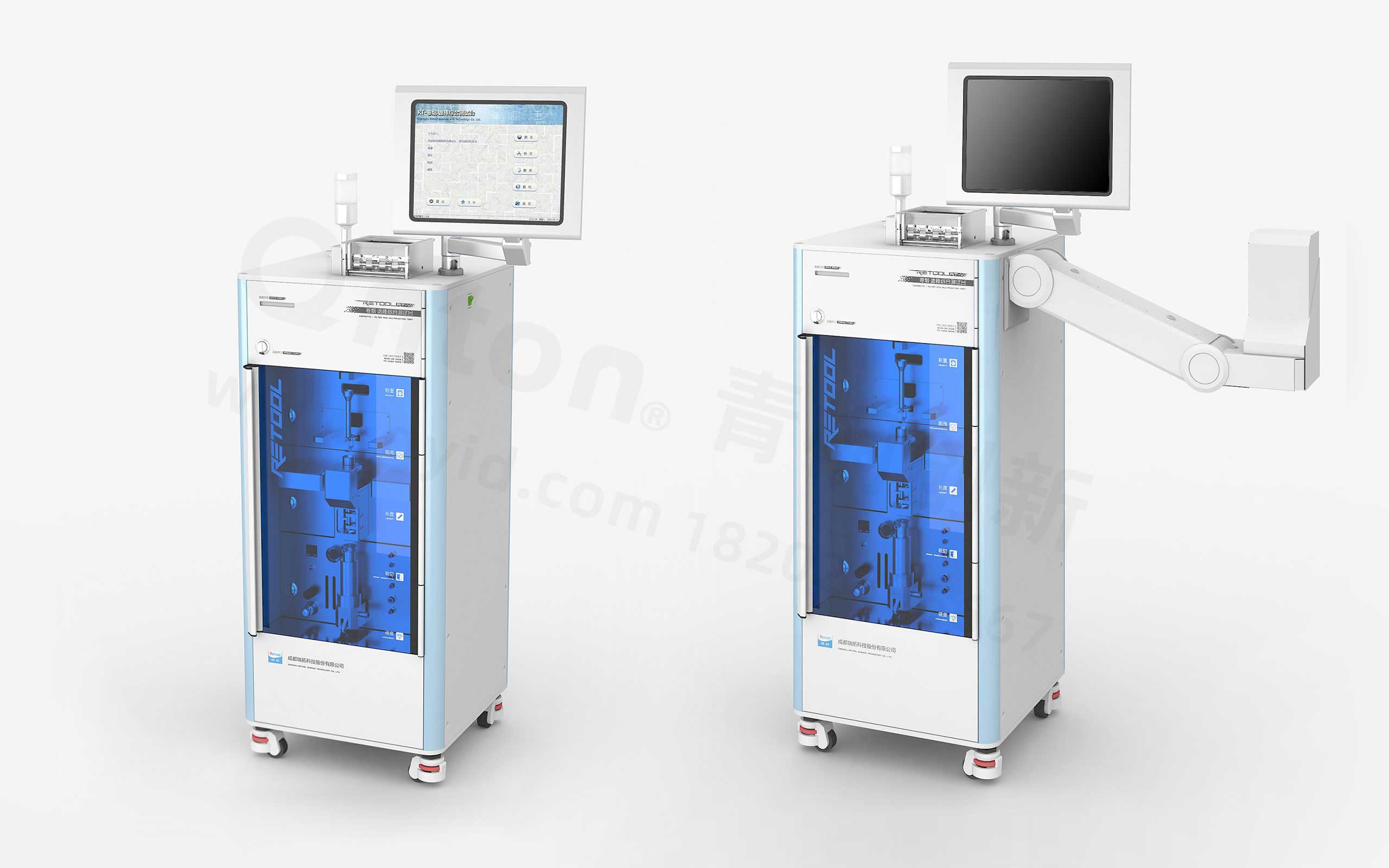 瑞拓科技源于中国科学院成都科学仪器研制中心,是一家致力于烟草行业物理检测仪器的研究开发、制造、销售的高新科技公司。先后参与了国家卷烟滤棒物理检测标准、沟槽滤棒特征参数标准的制定和修订工作,在行业内树立了“物理参数检测专家”的形象和地位。为提升瑞拓旗下卷烟・滤棒物理检测设备的视觉形象,青桐创新从现有产品、行业特征、企业文化等方面,提取产品特征DNA,并应用到产品外观设计当中。最终,使它们都能表达同一种形象和同一种瑞拓价值观。