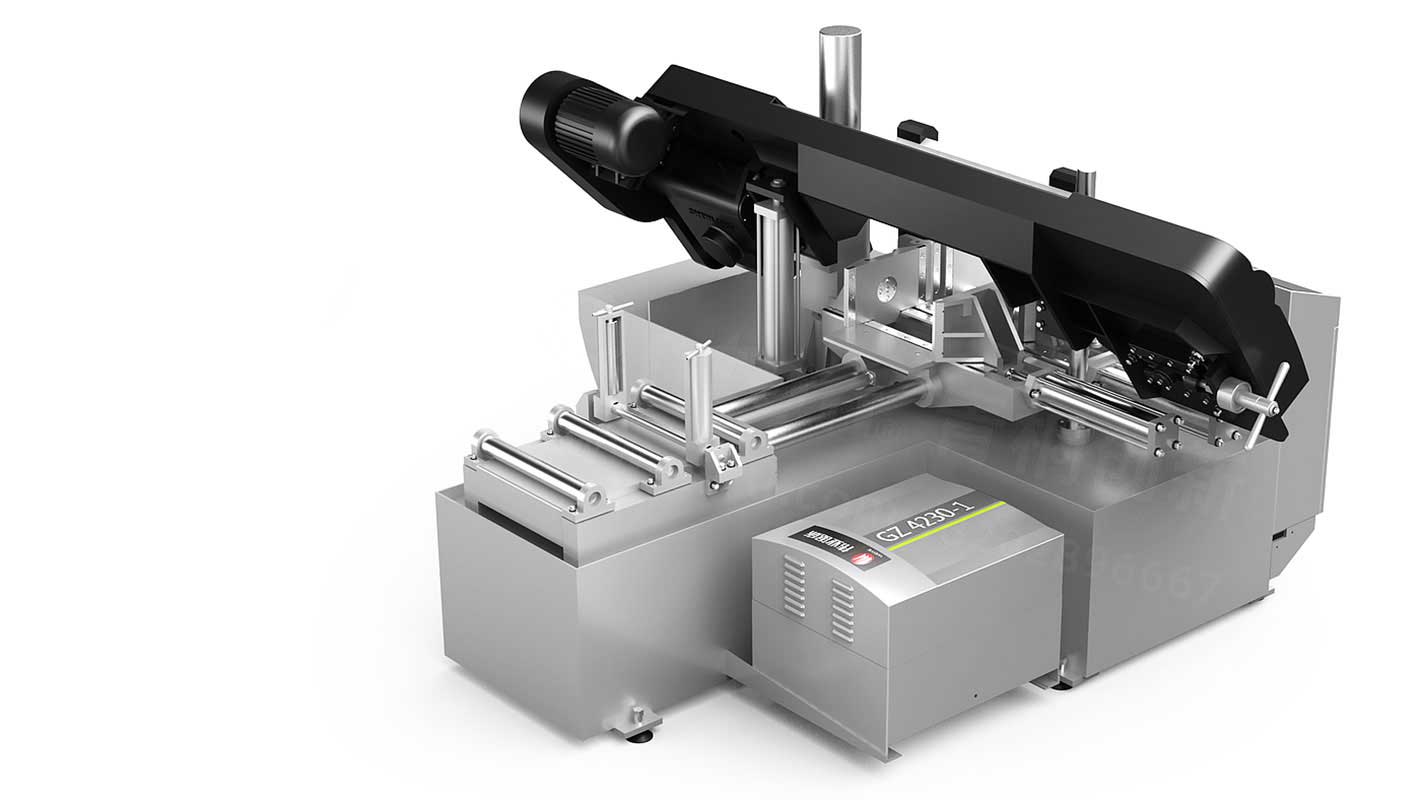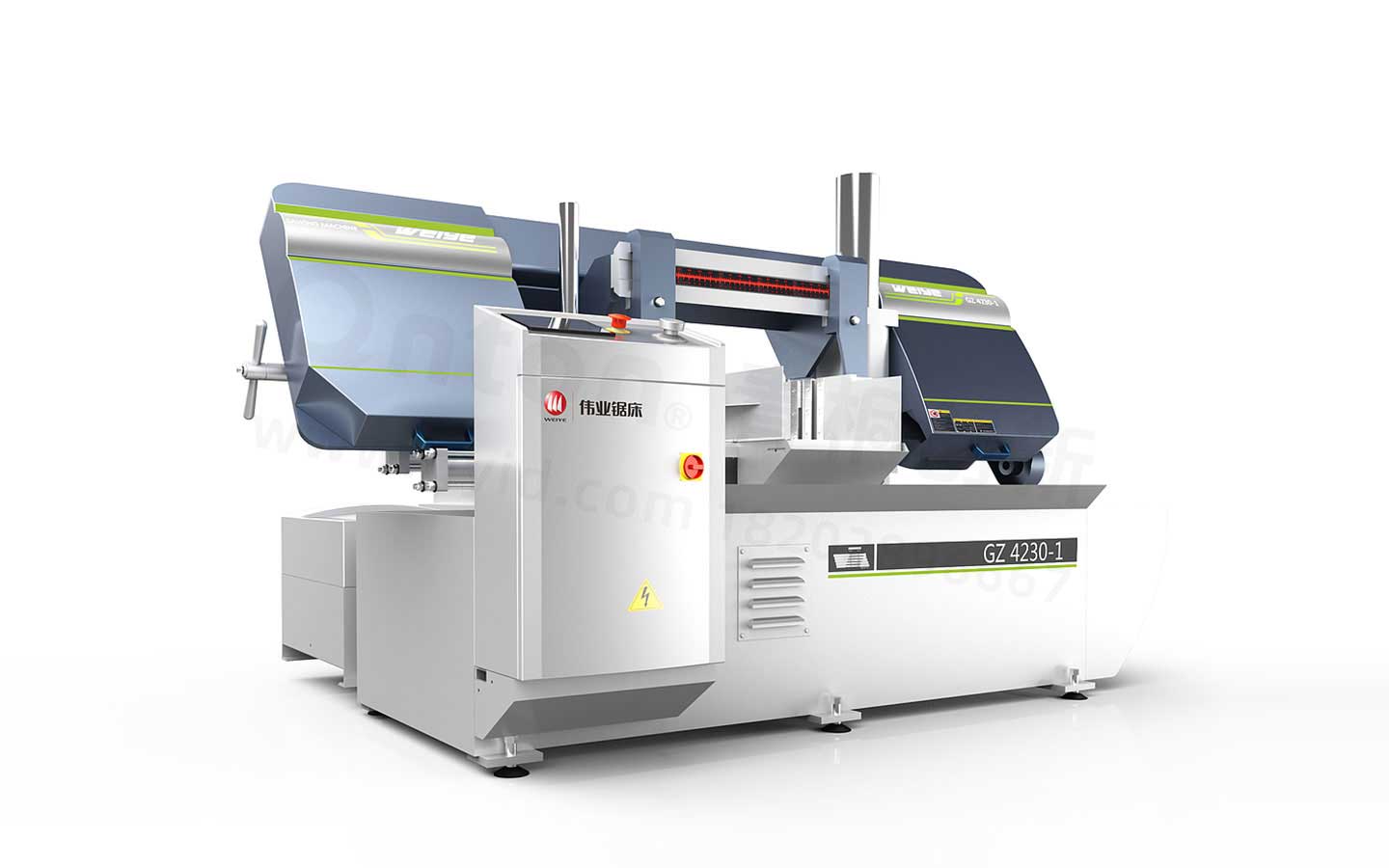 青桐创新根据在深入了解传统数控机床的工作流程、操作方式、工作原理的基础上,对其外观造型、CMF(色彩搭配、表面处理、加工工艺)进行了革新优化设计。数控锯床以圆锯片、锯带、锯条等做为刀具,用来大批量锯切金属圆料、棒料、方料、管料、型材等材料,可获得一致性非常好的同规格胚料。它由主动轮和从动轮带动锯条运转,锯条断料方向由导轨控制架控制,可通过调整自转轴承将带锯条调正调直经过扫削器将锯削扫掉,具有性能稳定,一致性好,效率高等特点。