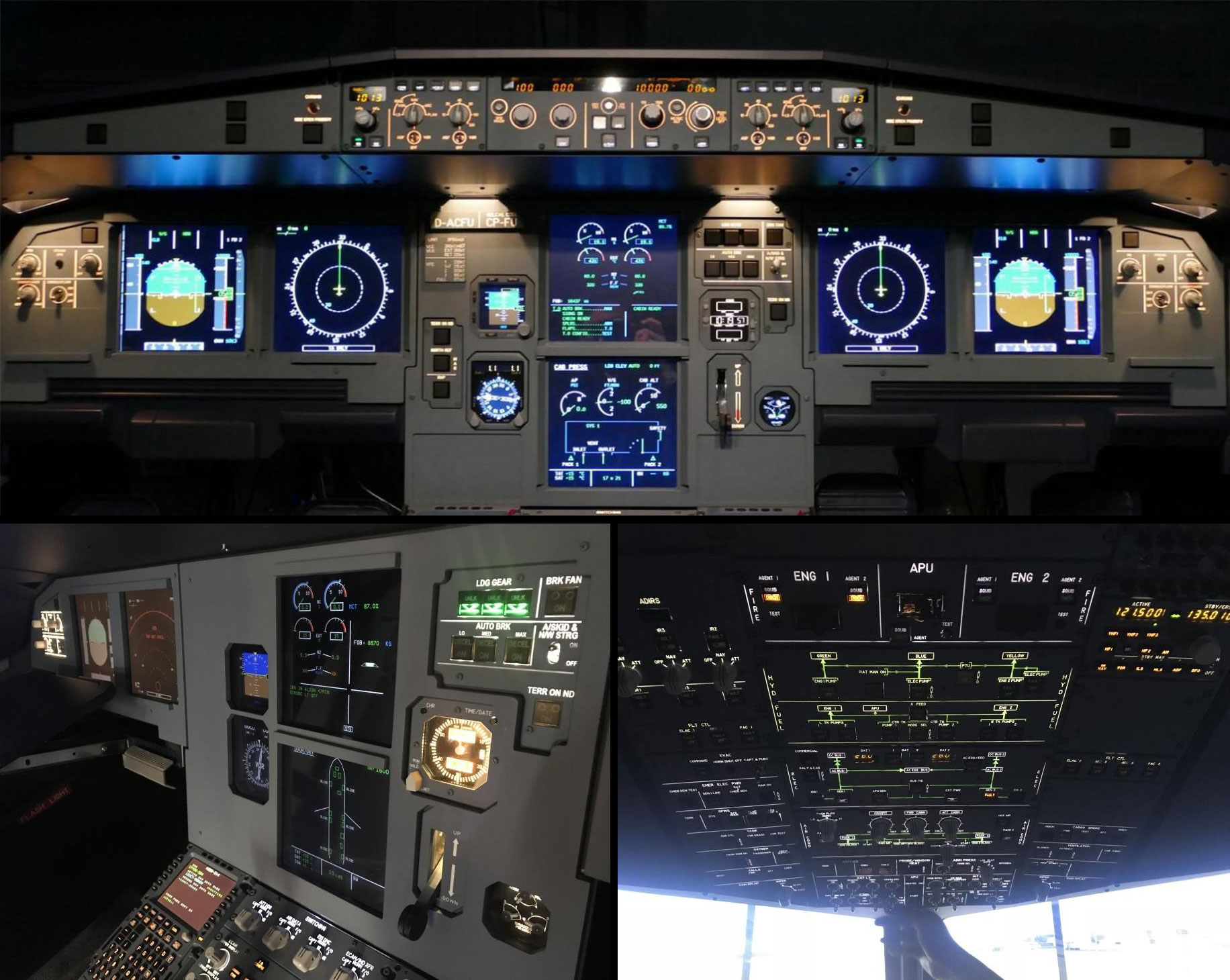 空客 320 模拟舱主要由模拟座舱、飞行系统、操纵系统、显示系统、计算机系统、主仪表板、座舱设备、顶部仪表板、中央操作台、座椅等部分组成。这套飞行仿真系统提供了一整套完整的飞行、视景、天气和声音的仿真飞行环境,能对飞机的各个系统功能及性能进行模拟,通过以太网与其他各系统计算机之间进行数据交联,并为其它系统实时提供飞行状态数据等。