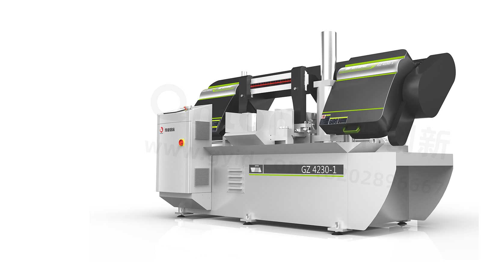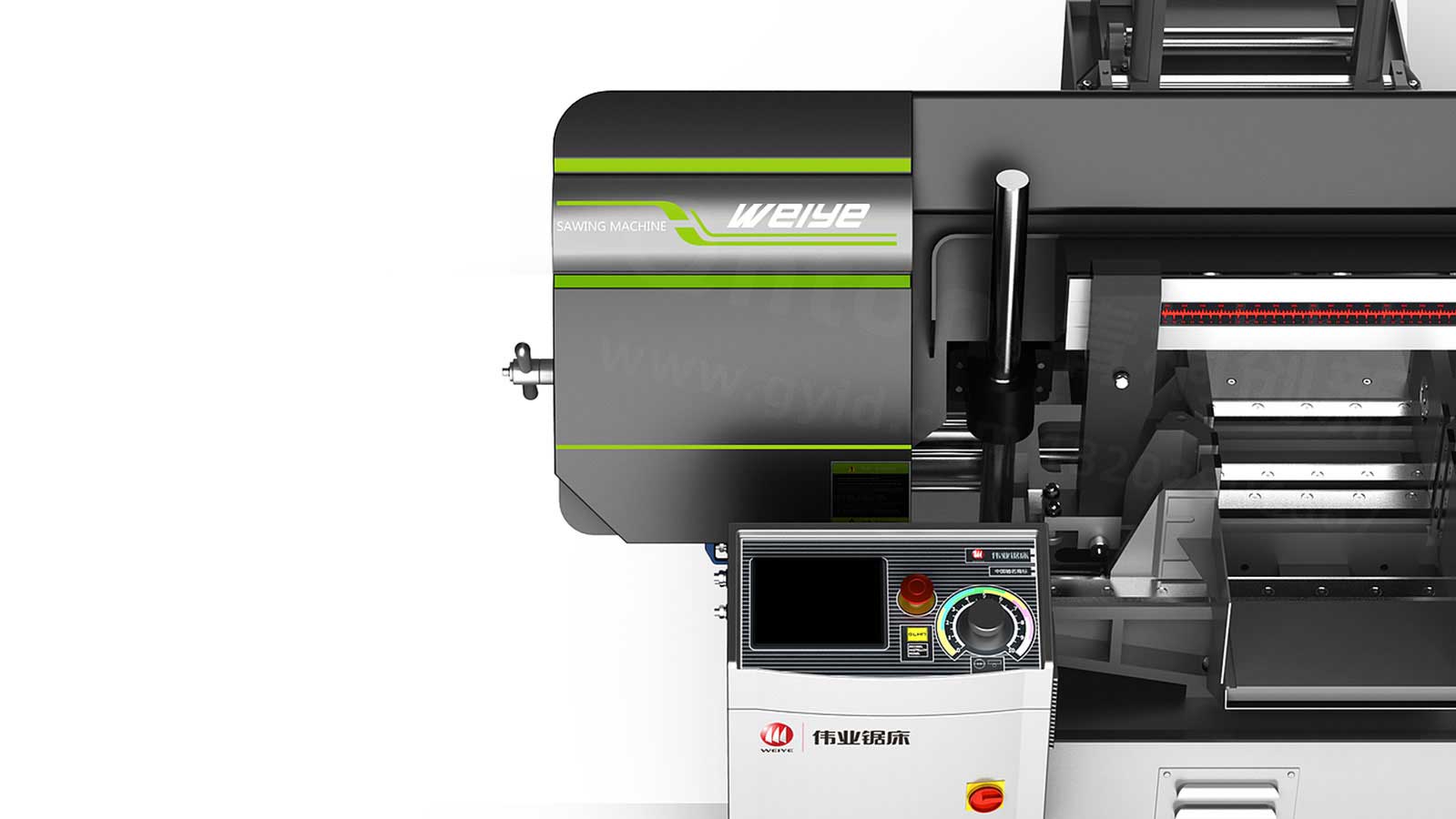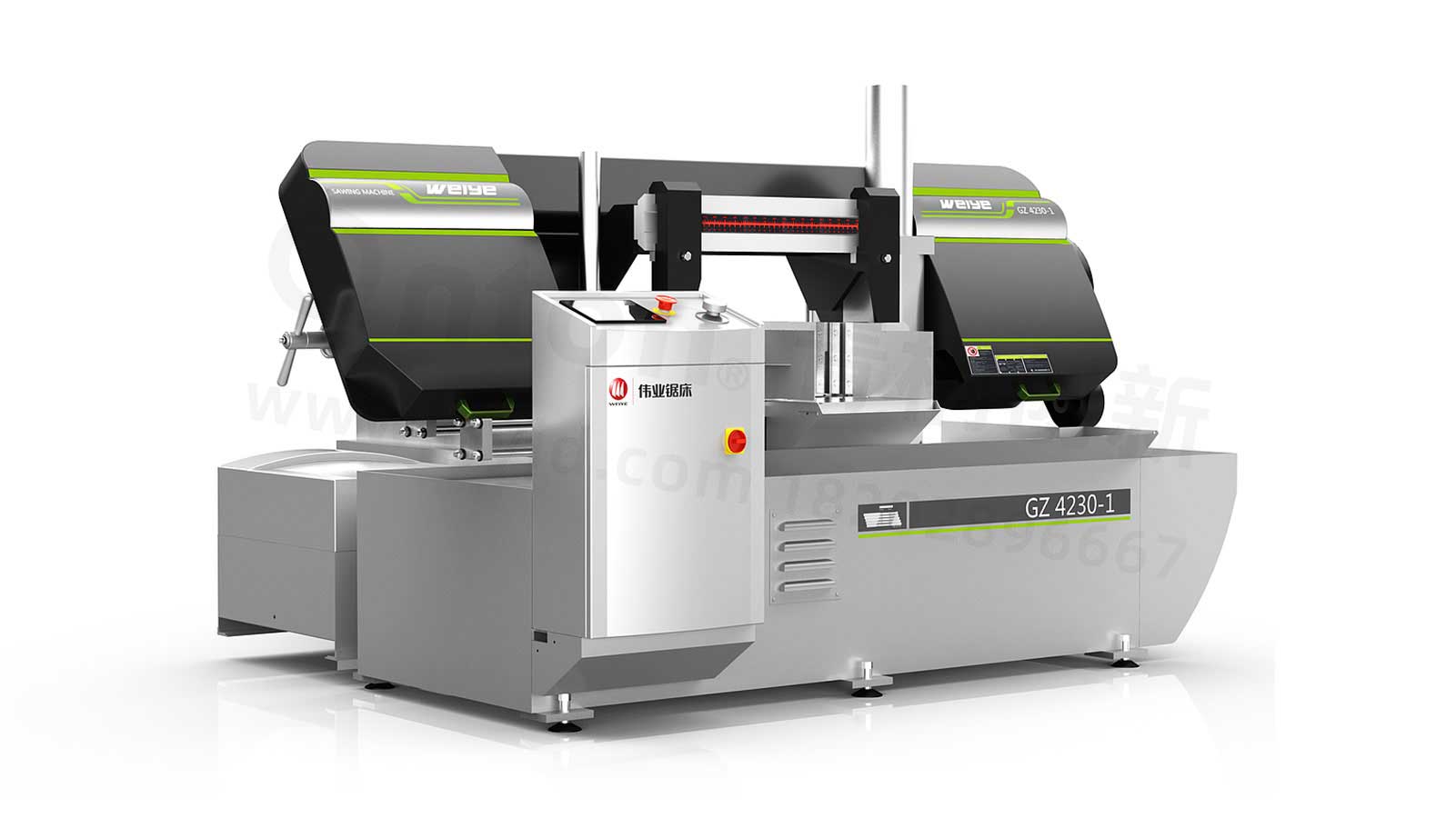 青桐创新根据在深入了解传统数控机床的工作流程、操作方式、工作原理的基础上,对其外观造型、CMF(色彩搭配、表面处理、加工工艺)进行了革新优化设计。数控锯床以圆锯片、锯带、锯条等做为刀具,用来大批量锯切金属圆料、棒料、方料、管料、型材等材料,可获得一致性非常好的同规格胚料。它由主动轮和从动轮带动锯条运转,锯条断料方向由导轨控制架控制,可通过调整自转轴承将带锯条调正调直经过扫削器将锯削扫掉,具有性能稳定,一致性好,效率高等特点。