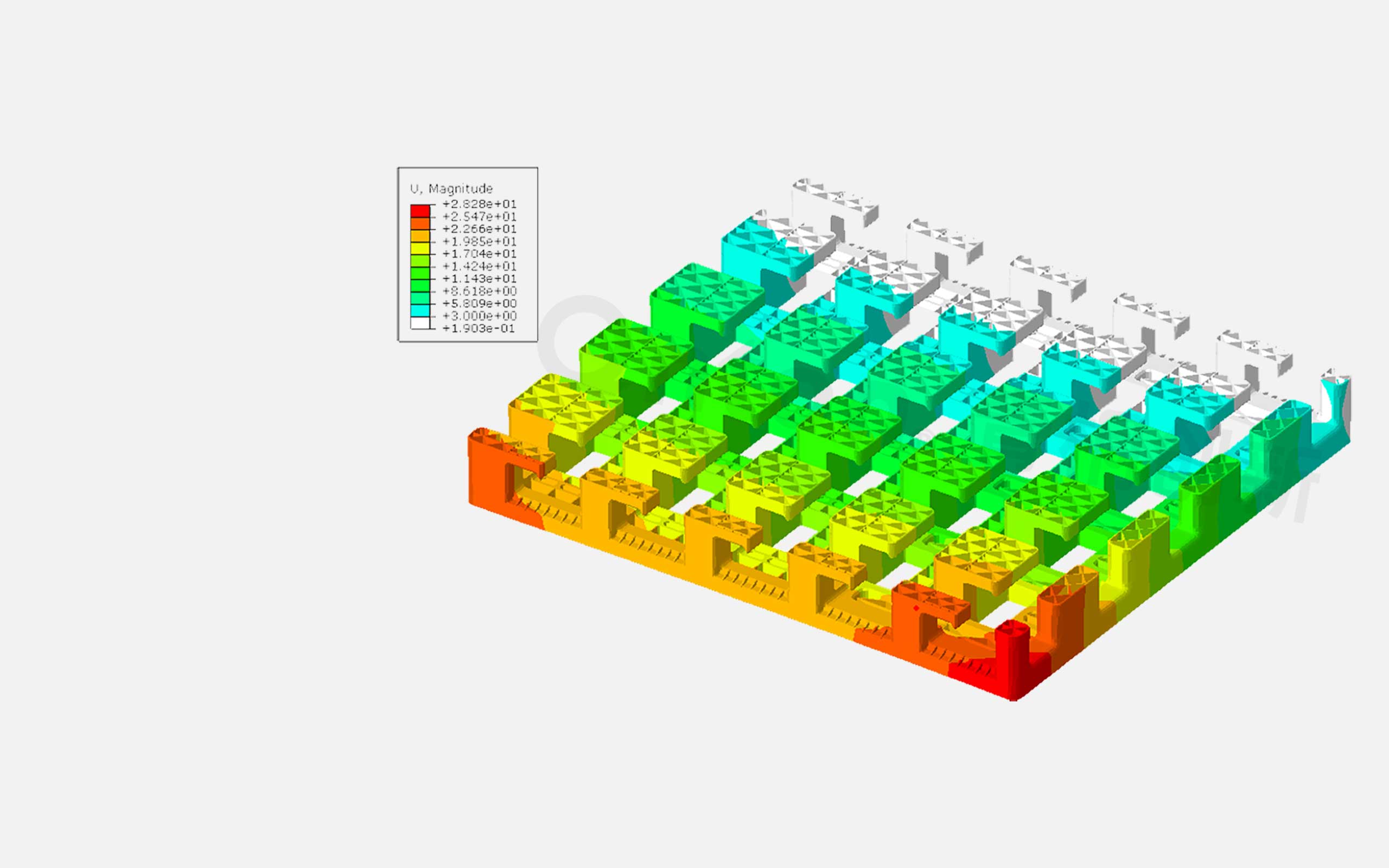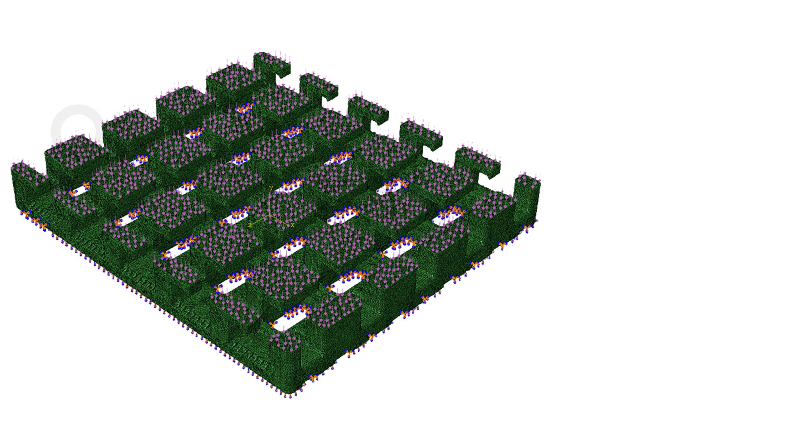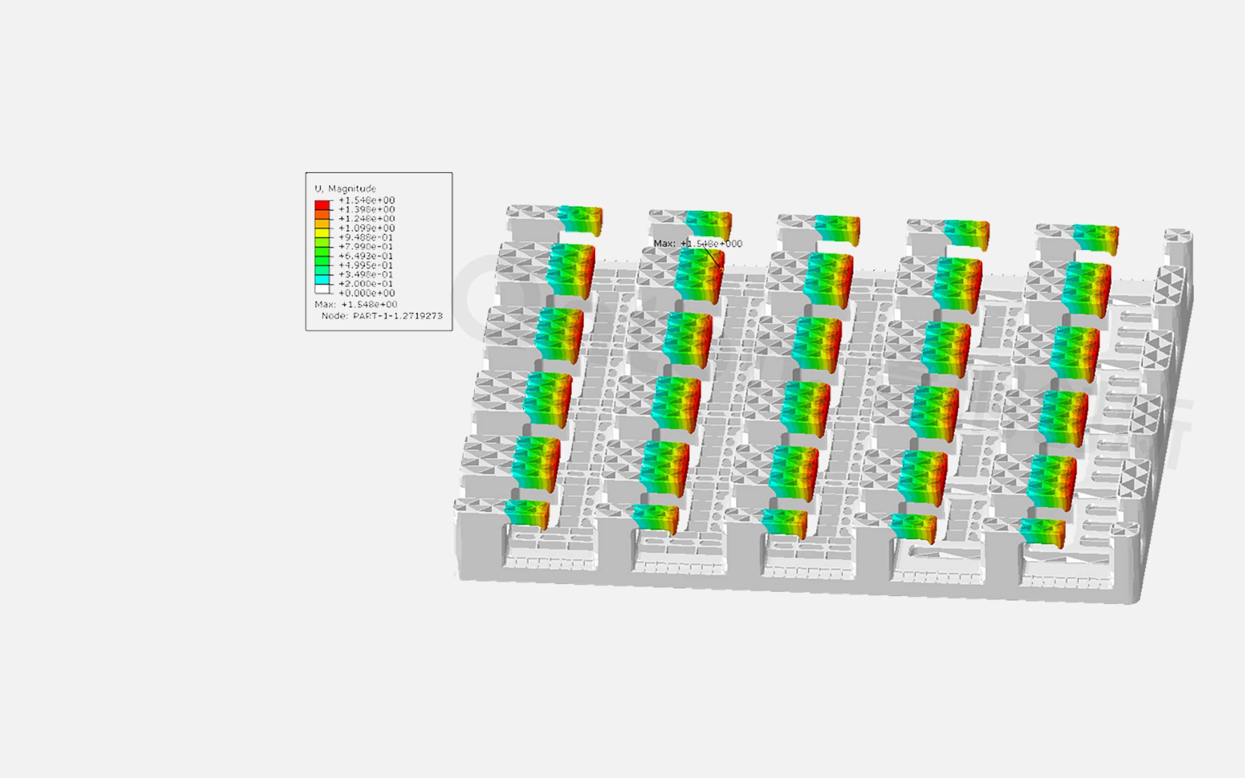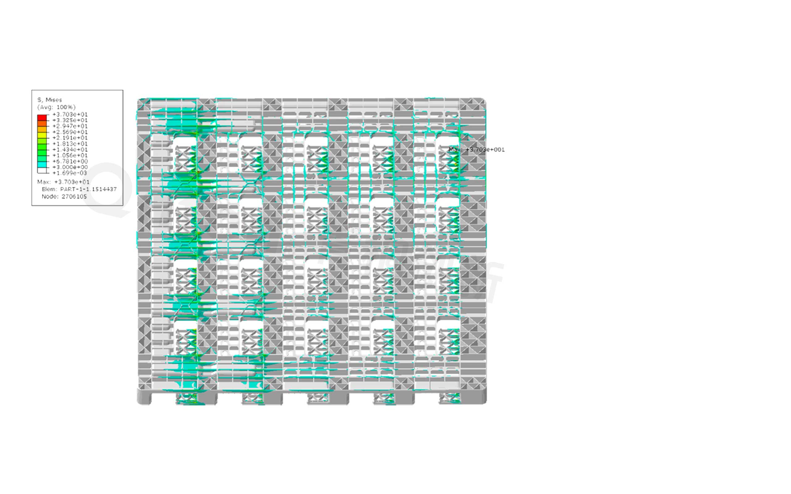 根据客户要求,塑料托盘按照以下分析(分析材料分别为:pa66+gf25/HDPE):1、动载分析(圆齿叉车移动承重托盘):圆齿直径60mm,间距为250mm,目标承重2吨,实际重物为袋装化工原料、肥料;2、静载分析(静止地面承重分析):目标承重6.5吨,重物为袋装化工原料、肥料。
